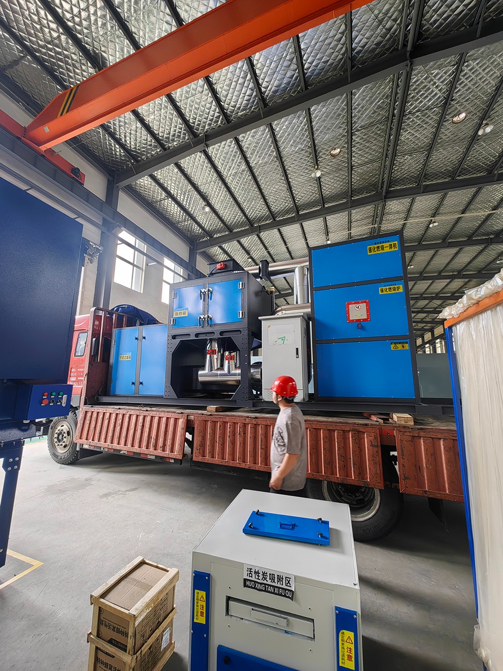 一臺包括干式過濾器、活性炭吸附箱、催化燃燒設備的一體機設備制作及安裝。